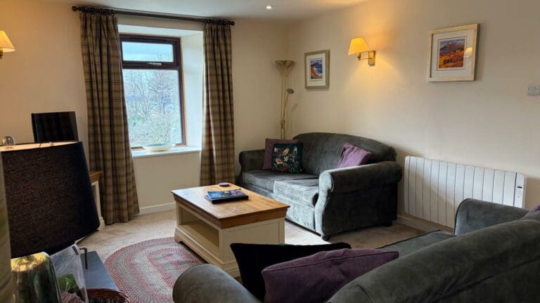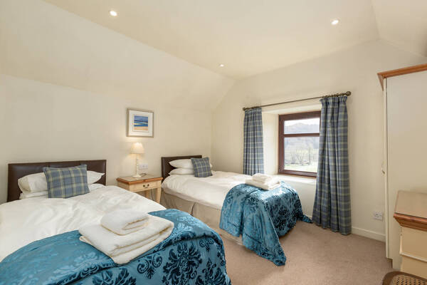 A utility room with a drying area leads to a convenient ground-floor shower room, while an open-plan staircase takes you to the upper level. Here, you’ll find a double bedroom, a twin bedroom, and a family bathroom with a bath and shower. With its idyllic setting, thoughtful amenities, and welcoming atmosphere, Beechwood House is the perfect base for a relaxing getaway at Melfort Village.
