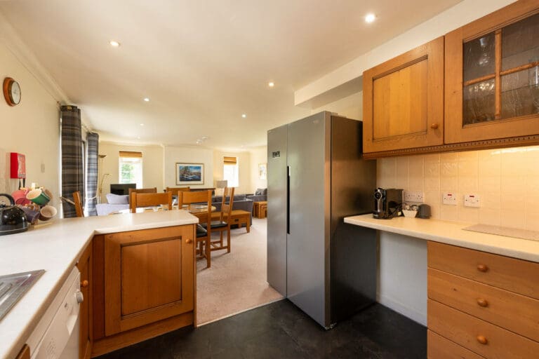 The Loft at Melfort Village offers a spacious two-bedroom apartment with glass balustrade balcony offering stunning views of Loch Melfort and the surrounding countryside, perfect for a relaxing retreat in a scenic setting.