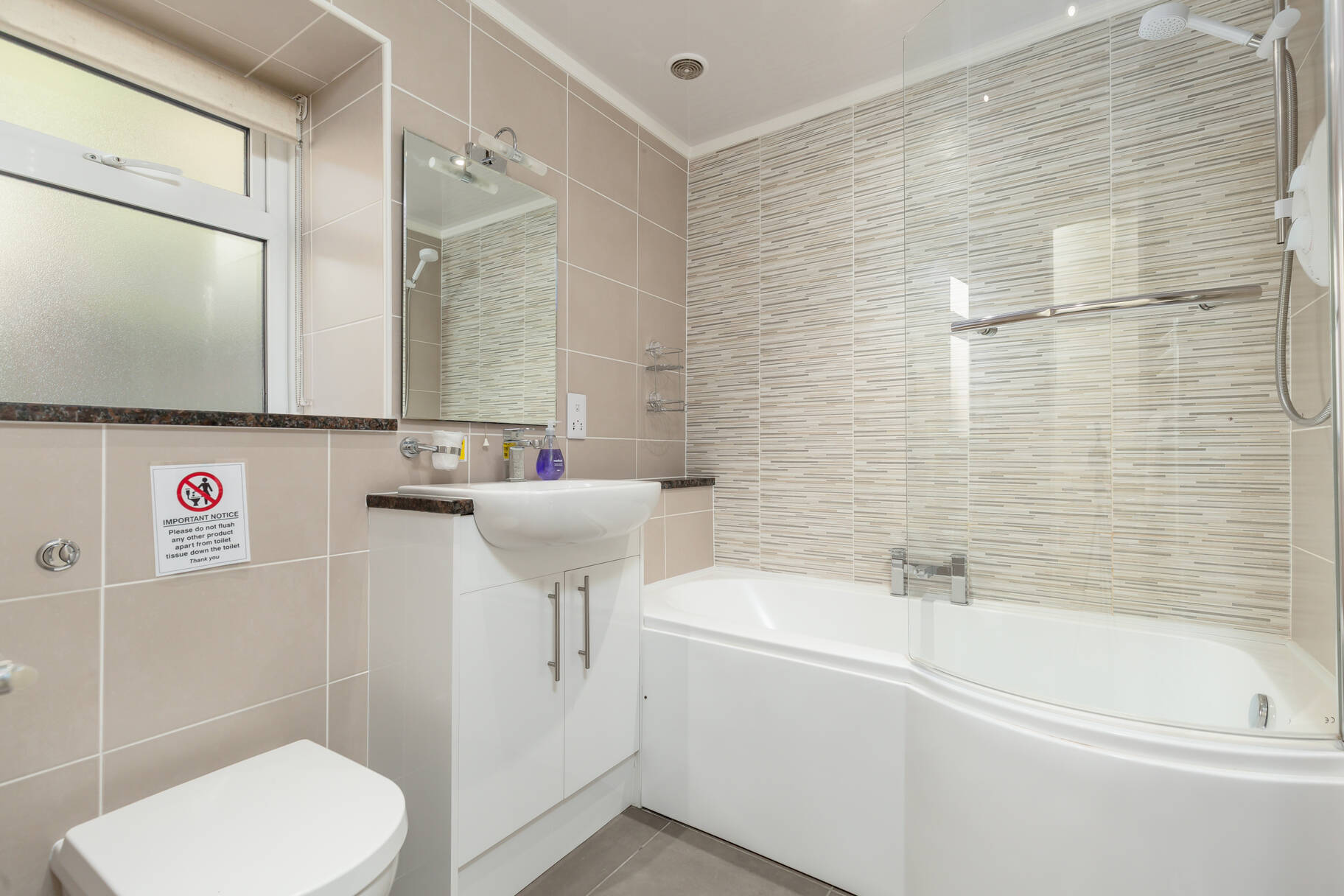 with bath, over-bath shower, WC & wash-hand basin & underfloor heating