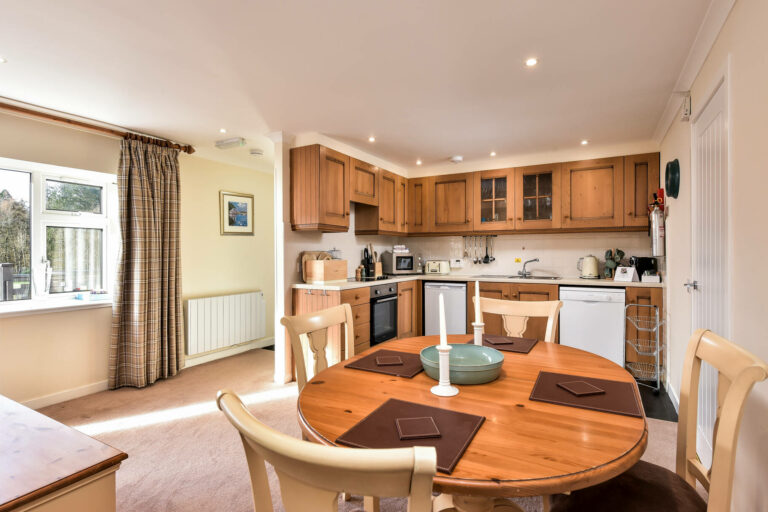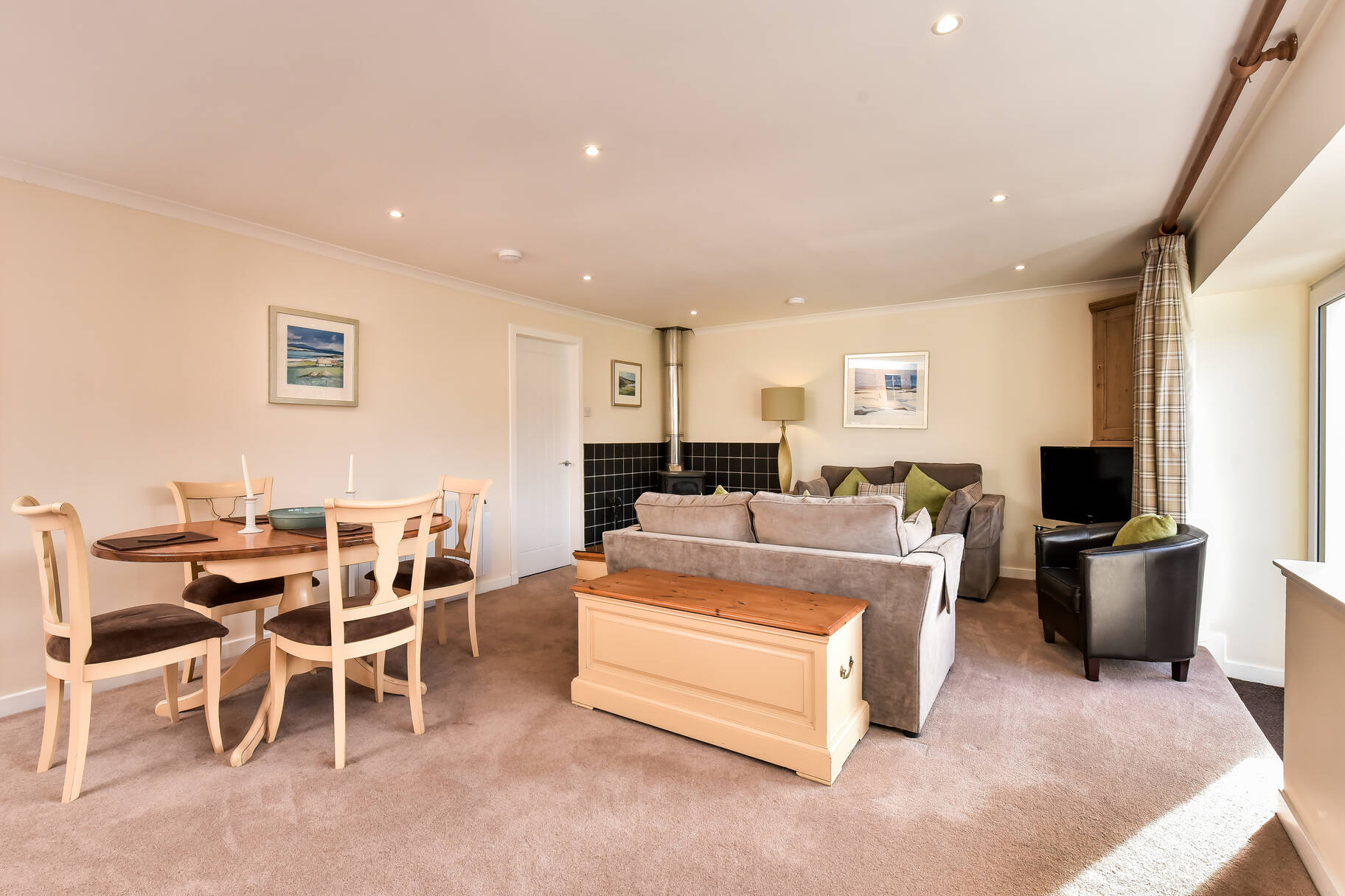 Coachmans West is an elevated first-floor apartment with stunning views over Melfort Village, offering spacious open-plan living, a private balcony, and two comfortable bedrooms. Perfect for a tranquil escape.