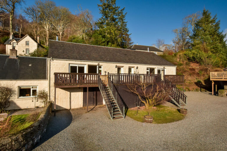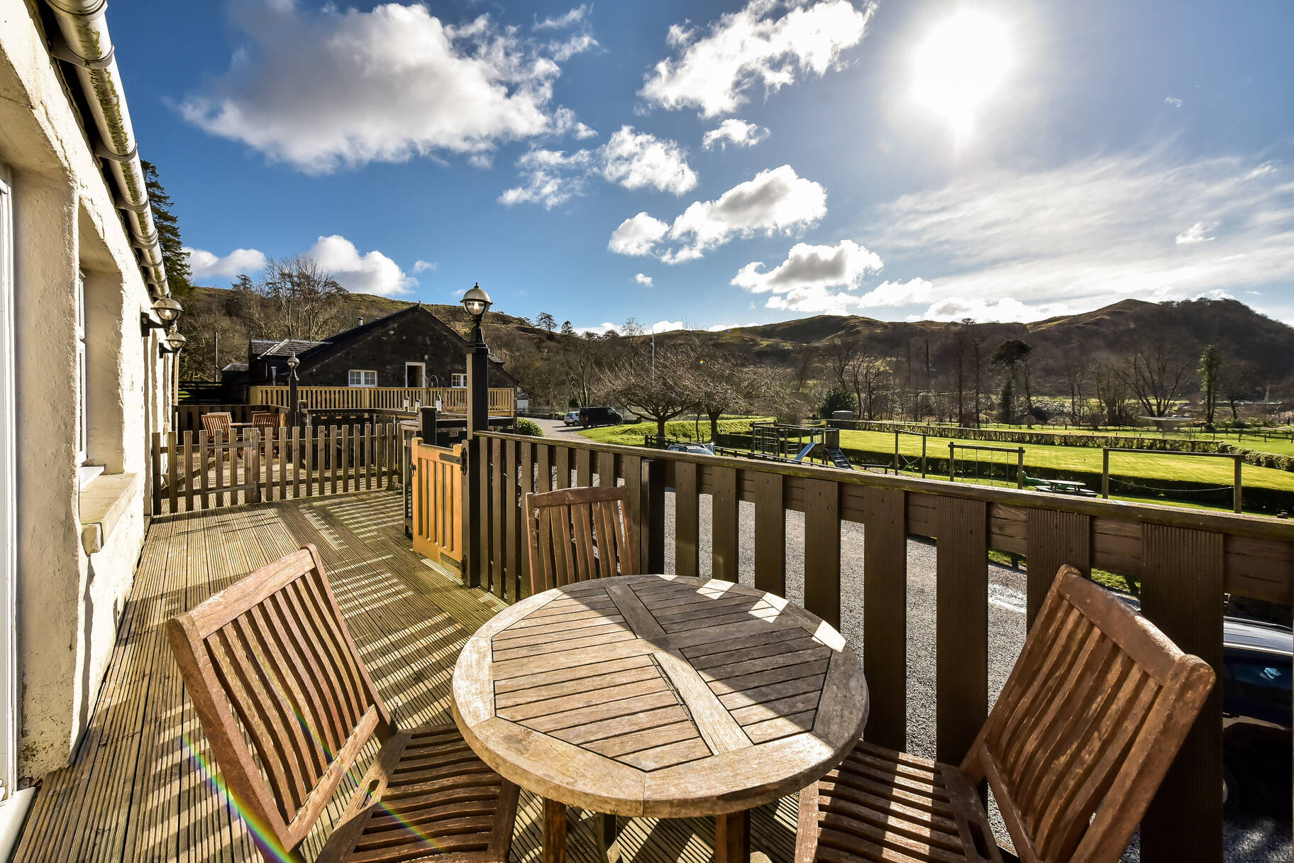Coachmans East and West are two charming first-floor apartments, converted from the original Coachmans Cottage, set in an elevated position with sweeping views over Melfort Village and the surrounding hills. Accessed via a staircase leading to a private wooden balcony, each apartment provides a peaceful retreat surrounded by natural beauty.