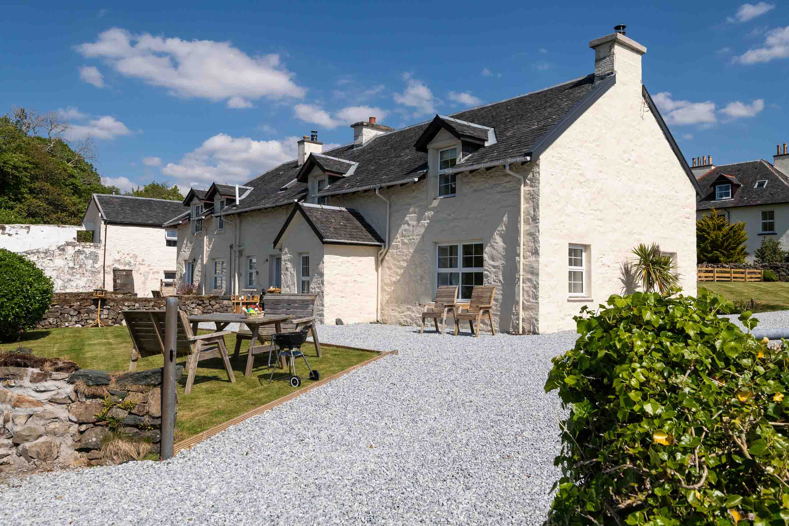 Farm Cottage 2 is a spacious three-bedroom retreat in Melfort Village, featuring a wood-burning stove fire, compact enclosed garden, and stunning views – perfect for a relaxing Highland escape.