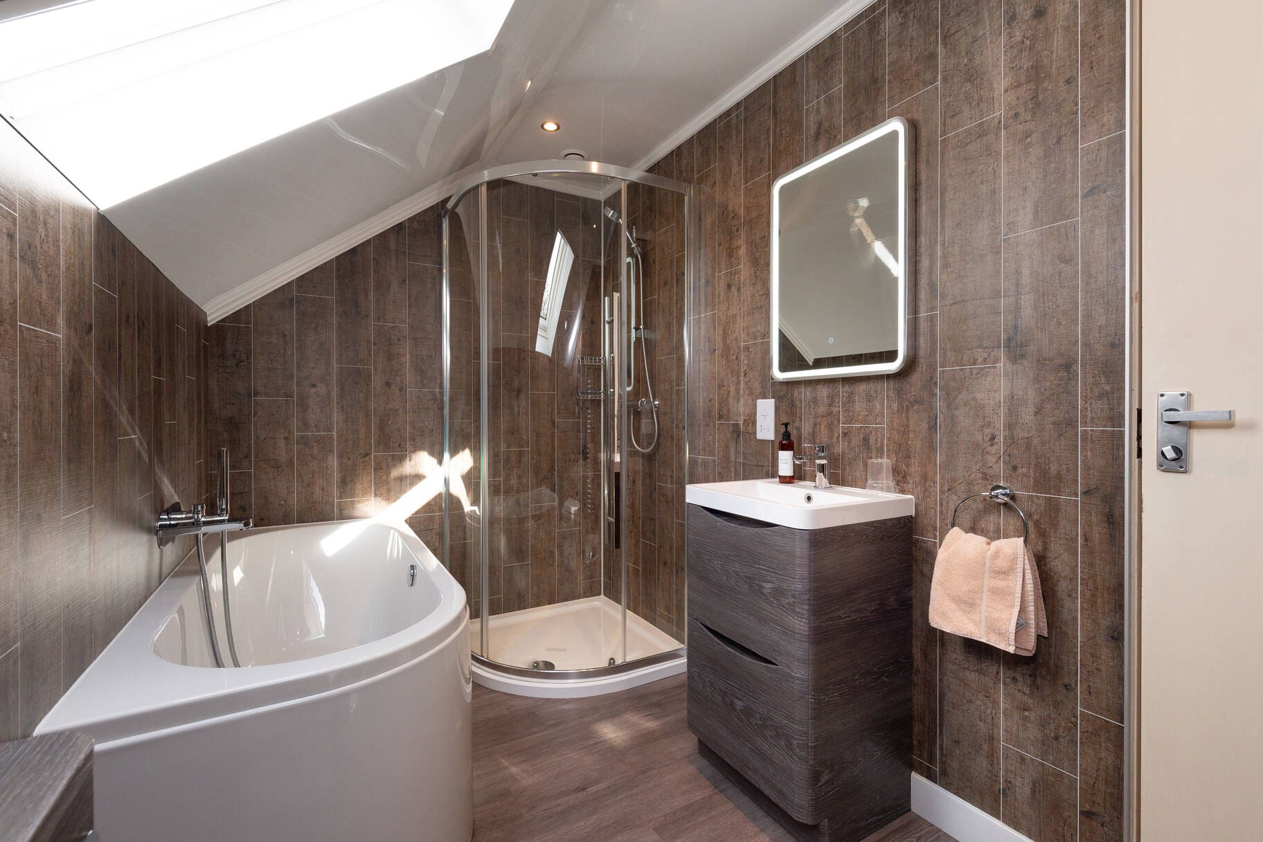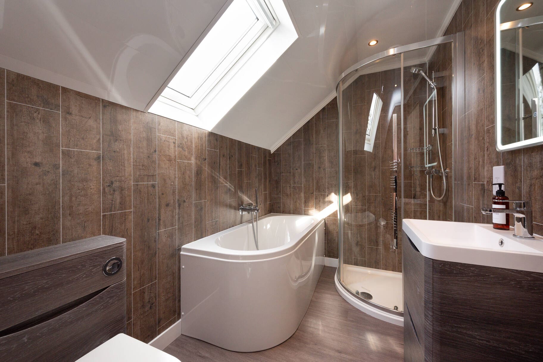 with bath, walk-in shower, WC & wash-hand basin