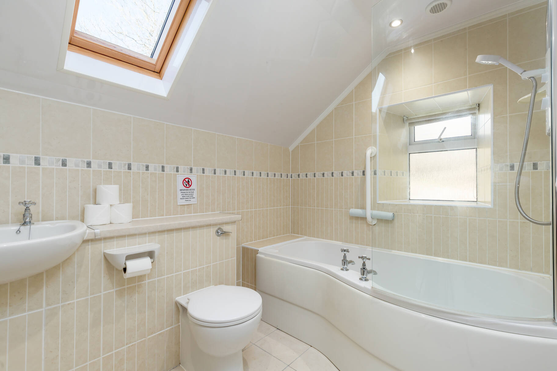 with bath, over-bath shower, WC & wash-hand basin