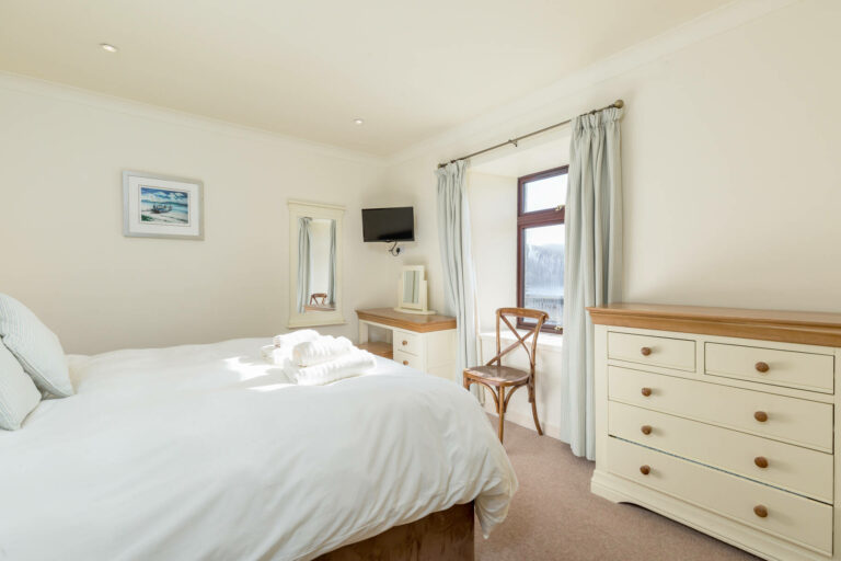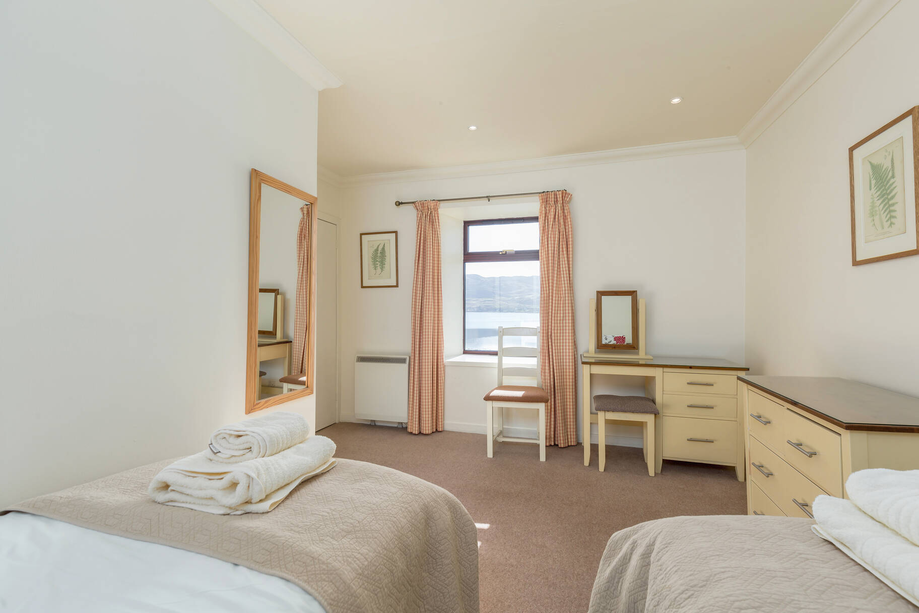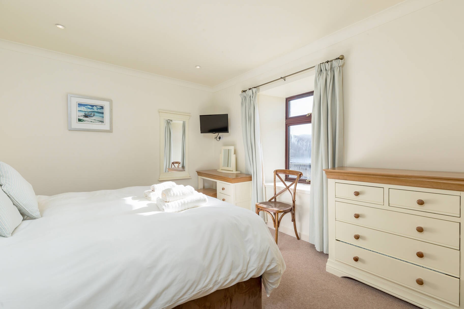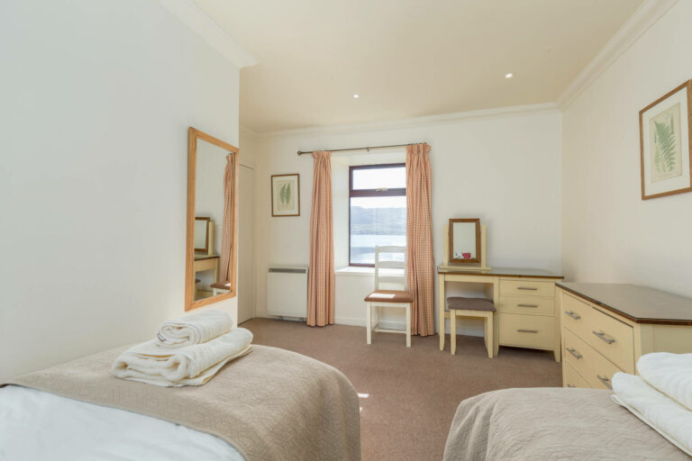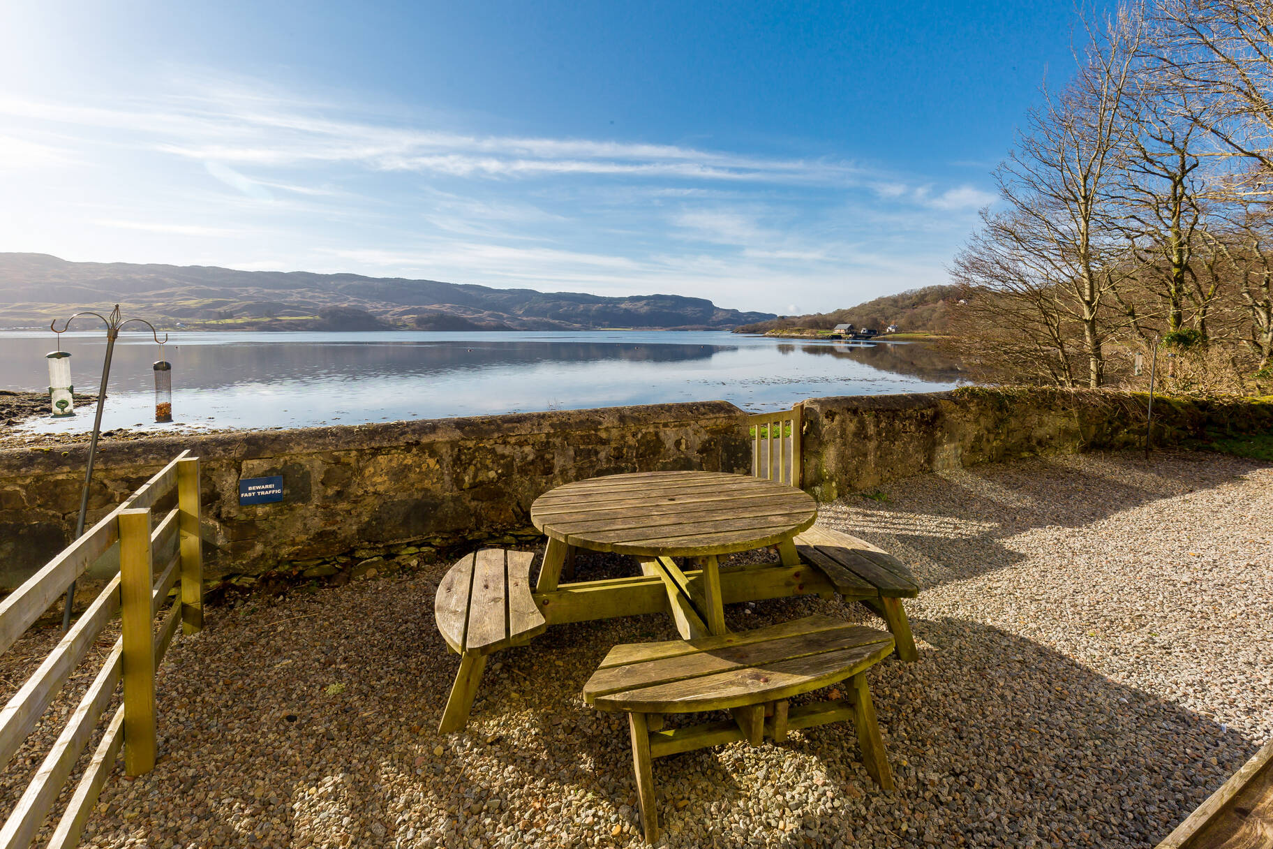 The cottage offers three comfortable bedrooms—a double, a twin, and a bunk room with four beds—providing flexible accommodation for larger groups. A bathroom with a bath and over-bath shower, plus a convenient ground-floor shower room, ensures ample facilities for all guests. Outside, the large shared lochside garden and gravelled seating area offer the perfect setting to soak in the stunning views. Parking is available onsite, and well-behaved pets are welcome, making this an excellent choice for a truly memorable Highland retreat.
