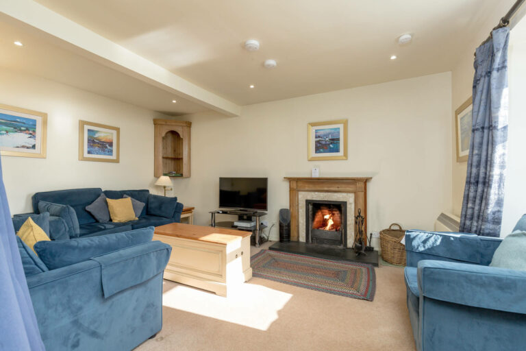 Inside, the generous sitting room provides a warm and inviting space to relax, featuring an open fire, a double sofa bed for additional guests, and a flat-screen TV with Freeview, DVD player, and iPod dock. The large, well-equipped kitchen includes an oven, hob, fridge, freezer, microwave, dishwasher, and coffee machine, while the adjoining dining area is perfect for enjoying meals together.