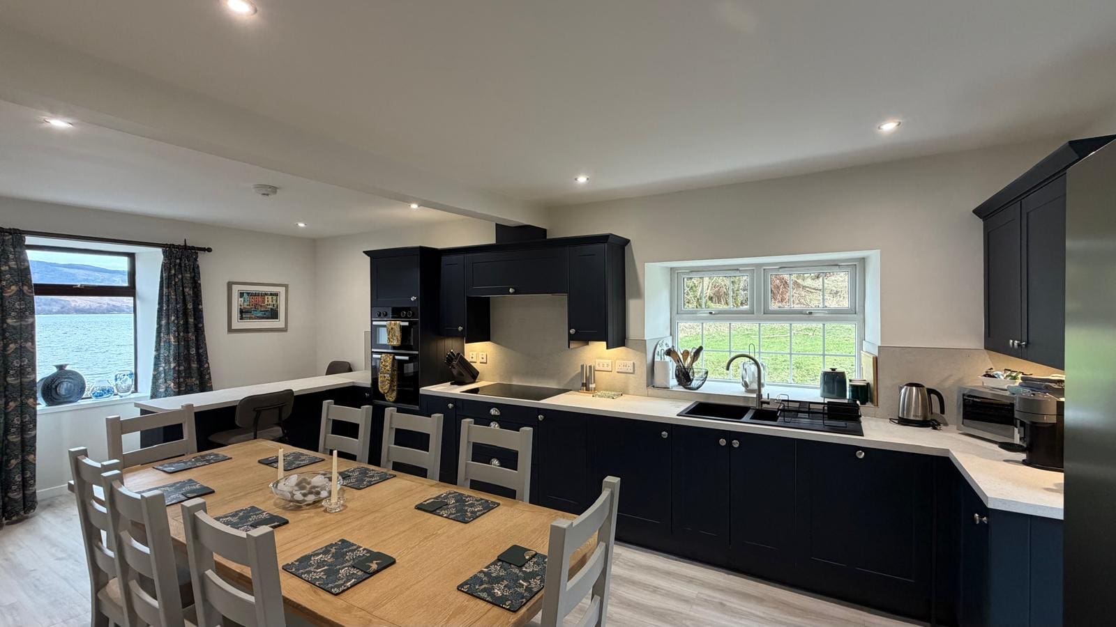 The cottage offers three comfortable bedrooms—a double, a twin, and a bunk room with four beds—providing flexible accommodation for larger groups. A bathroom with a bath and over-bath shower, plus a convenient ground-floor shower room, ensures ample facilities for all guests. Outside, the large shared lochside garden and gravelled seating area provide the perfect setting to soak in the stunning waterfront views. Onsite parking is available, and well-behaved pets are welcome, making this an excellent choice for a truly memorable stay in the Scottish Highlands.