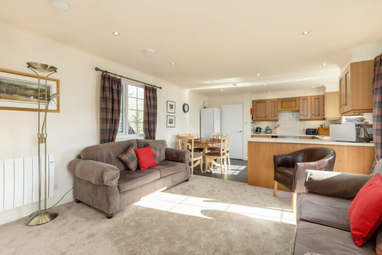 Stables East is a cosy two-bedroom cottage in Melfort Village, featuring an upside-down layout, charming views over the Inner Villeg, and a shared courtyard garden – perfect for a peaceful retreat.