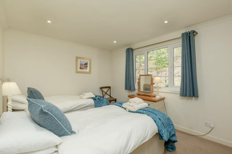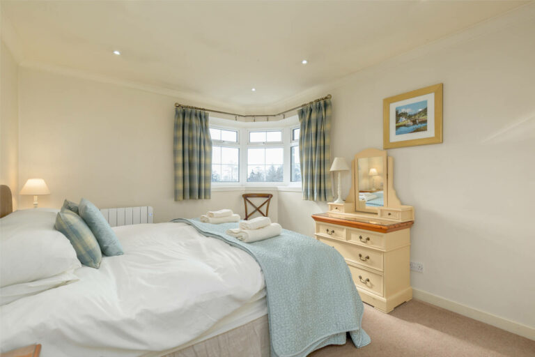 The cottage offers two inviting bedrooms—a spacious double and a bright twin—ensuring a restful night’s sleep. A family bathroom with a bath and overhead shower, alongside a separate shower room, provides convenience for guests. Quarry Cottage is accessed via a steeply sloping driveway, with parking available at the rear of the building. With its unrivalled views, modern comforts, and private garden, Quarry Cottage is an idyllic retreat for those looking to immerse themselves in the beauty of Melfort Village.