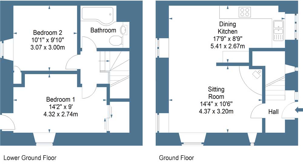 Designed to make the most of its elevated position, Stables East features an upside-down layout, with the main entrance leading directly onto the first floor. Here, an open-plan living area provides a warm and inviting space, complete with a comfortable sitting room, dining area, and a well-equipped kitchen. Large windows fill the space with natural light while offering breathtaking views of the surrounding landscape.