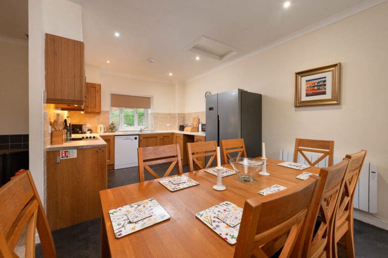 Pier House 1 is a spacious lochside retreat at Melfort Village, featuring stunning views, an open fire, a large kitchen, and a shared garden – perfect for a relaxing Highland escape.