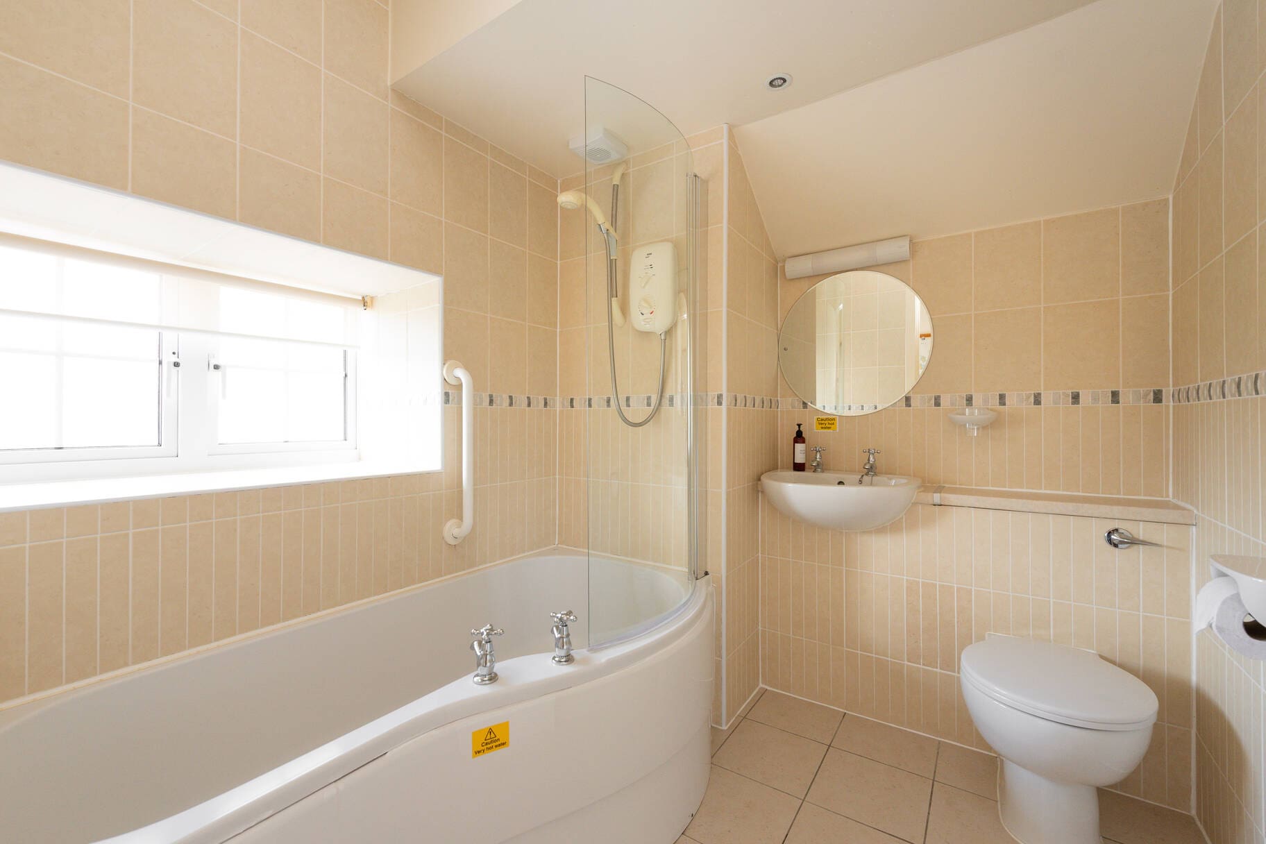with bath, over-bath shower, WC & wash-hand basin