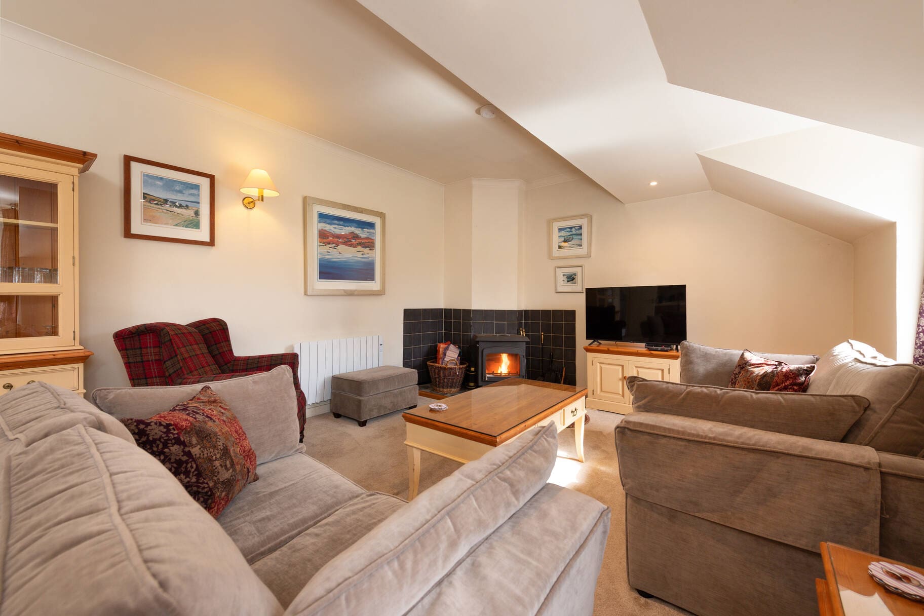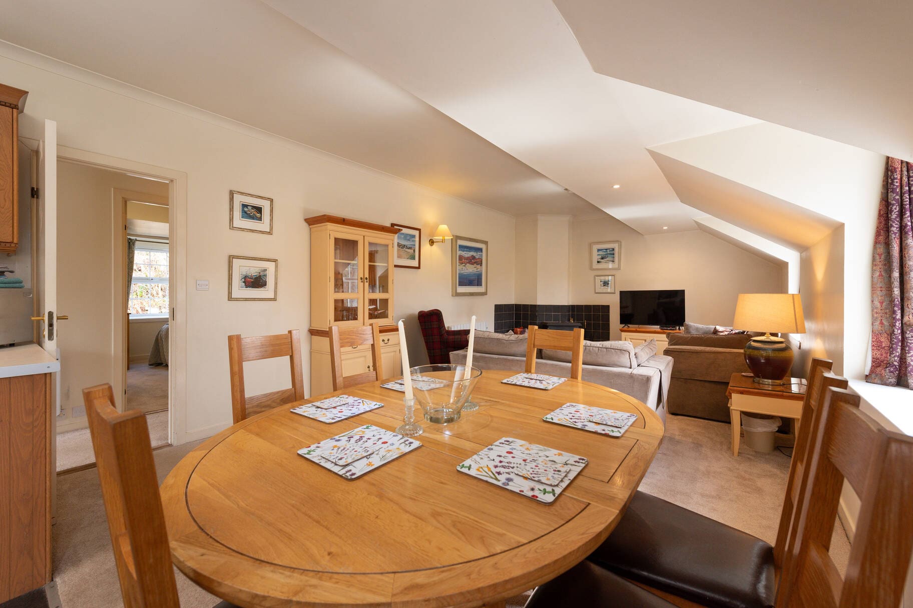 Upper Cooperage is a bright and spacious two-bedroom apartment in Melfort Village, featuring a wood-burning stove, private balcony, and stunning views—perfect for a peaceful Highland retreat.