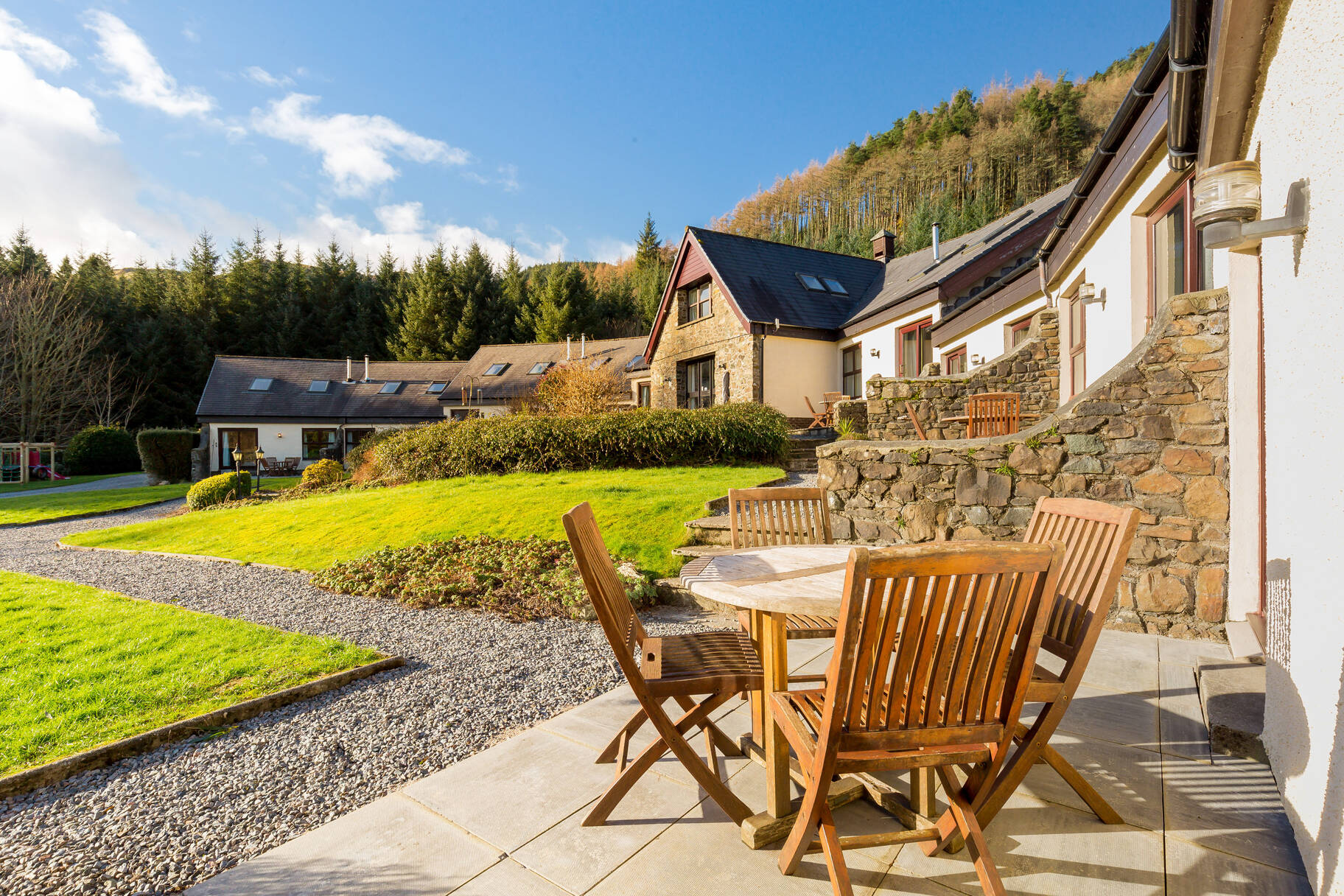 The Walled Garden Mews Cottages offer peaceful two-bedroom retreats within the stunning Melfort Village, featuring open-plan living, well-equipped kitchens, and serene garden views – perfect for a relaxing getaway.