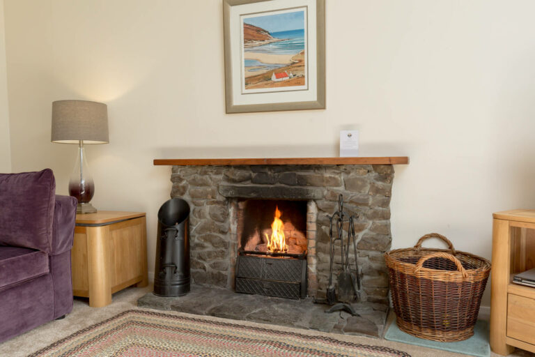 Inside, the spacious living area invites relaxation, featuring a comfortable sitting room with a traditional open fire, a flat-screen TV with Freeview, and a DVD player. Large patio doors flood the room with natural light and open onto the private garden. The well-equipped kitchen includes everything you need, from a microwave and dishwasher to a coffee machine, making it perfect for preparing and enjoying meals together.