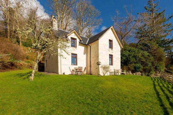 This detached two-storey self catering cottage is set into the hillside amongst the Beech woods with glorious views over Melfort Village and south over Loch Melfort. It has its own large garden with garden seating and plenty of room for car-parking.