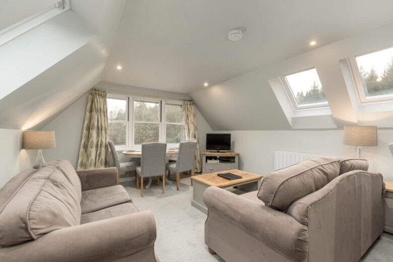 Nestled in the heart of Melfort Village, Coachmans West is a charming two-bedroom apartment, offering a comfortable retreat with panoramic views over the village and surrounding hills.
