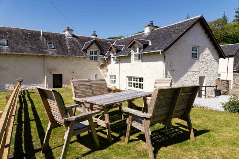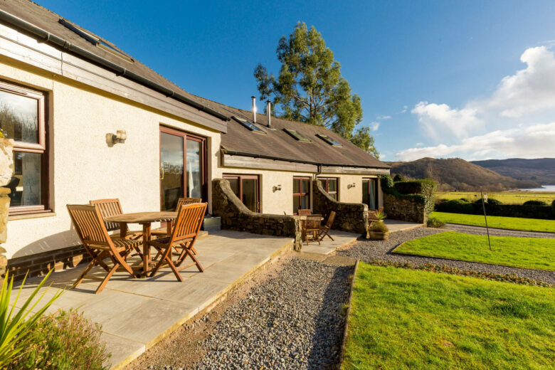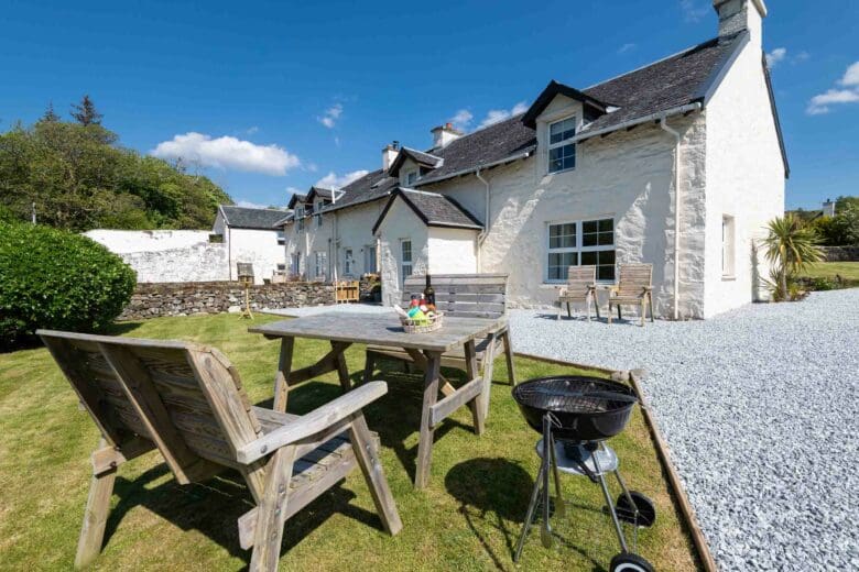 Farm Cottage 1 is a spacious three-bedroom retreat in Melfort Village, featuring a wood-burning stove fire, large shared garden, and stunning views – perfect for a relaxing Highland escape.